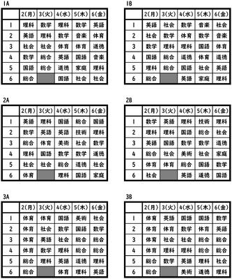 ◎3時間目 1年A組の数学のようす 〇アドバンスコース 正多面体についての学習です。 正多面体は「正四面体・正六面体・正八面体・正十二面体・正二十面体」の5種類しかないそうです。 覚え方として「四、六、ハ、十二、二十」を生徒みんなで考え「ヨーロッパ中にニート」としました。 笑顔 さあ正多面体について詳しく調べてみよう。 〇ベーシックコース こちらも同じく正多面体について学習です。 正多面体の特徴を面の数、頂点の数、辺の数など詳しく調べています。 頂点や辺などの数を数えて・・・ 分かった数を書いていきます。 ◎3時間目 1年B組の社会のようす 「下剋上」の世の中と町人(商人)について学習しています。 グループで・・・ 分からないところは先生に質問しながら考えを深めています。