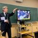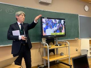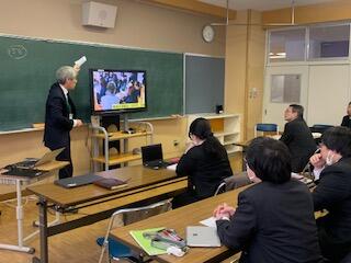 5時間目に1・2年生の授業を公開した後、紋別市内先生方と研修会を実施し、オホーツク教育局の秋山義務教育指導監より本校の授業についてお話をしていただきました。