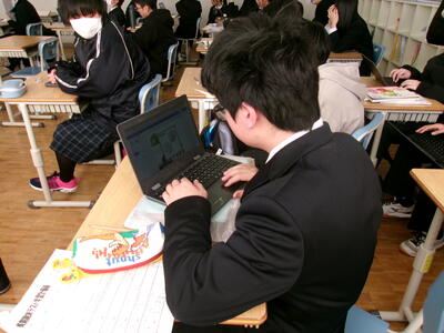 英語担当の山谷先生が新たな授業形式で授業を行いました。