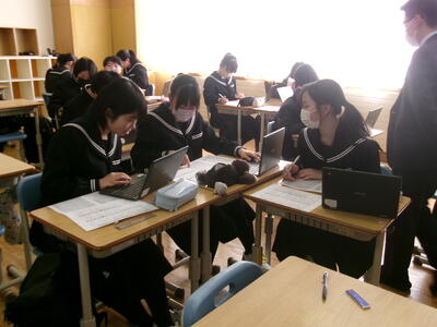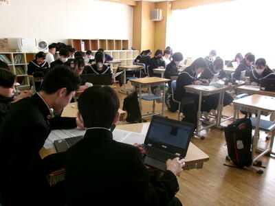 給食後の5時間目ですが、真剣に勉強している2Aの生徒たち