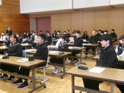 第80期生徒会役員と紋別中全校生徒の活動方針について話し合います。