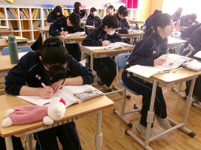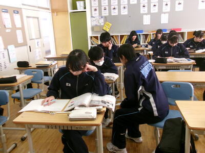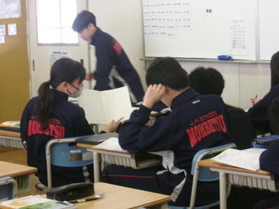 生徒玄関前には、タイルの隙間からたくさんの雑草が生えています。丁寧に草を根からとっています。