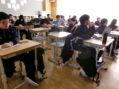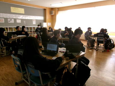 どんどん課題を進める生徒 先生の説明を参考にする生徒