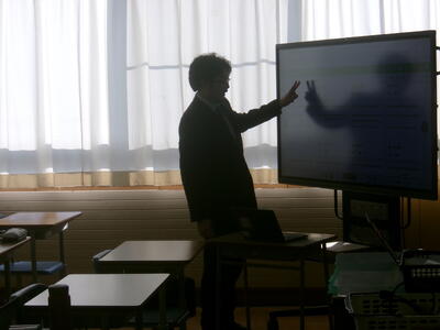 今日は、網走地方教育研修センターの研究員の5名の先生が山谷先生の授業を視察に来ています。