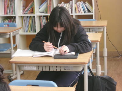 分からないところは先生に質問しながら考えを深めています。