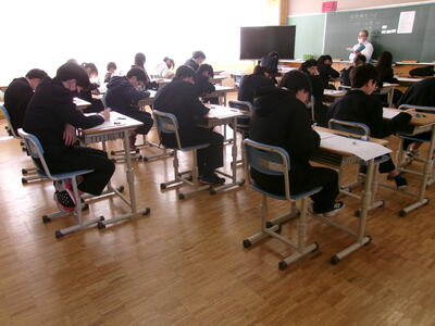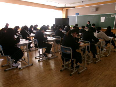 指導は、3年生の先生が終了した後、校長、大河原教頭先生、山谷先生のどちらかと面接をして本番に向かいます。3年生は教科書の内容も終わり、入試の学力検査に向けて日々勉強中です。