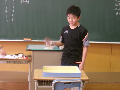 10回投げた時のようすを話しています。実験結果からバラバラすぎてわからないとの意見が・・・