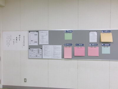 給食の献立表、保健だより、学校だよりなどを掲示するコーナーです。