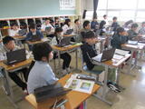 クロームブックに配信された評価などについて真剣に読んでいます。
