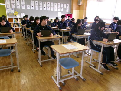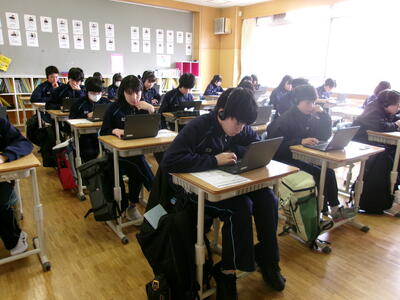 3年生は、全国学力・学習状況調査(英語:「読むこと」・「書くこと」・「聞くこと」)を実施しました。