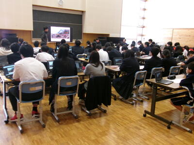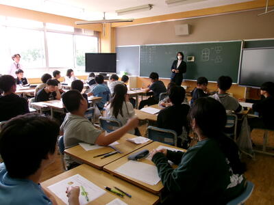 今日は、他の学校の社会の先生が大久保先生、前田先生の授業を見学に来ました。