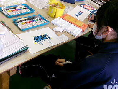 名前をデザインし絵の具で色付け