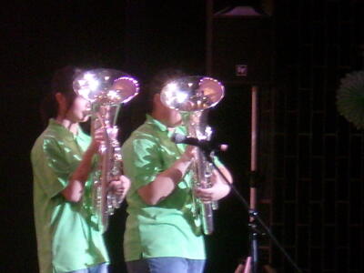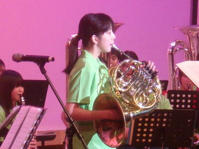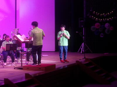 吹奏楽の演奏に合わせて熱唱