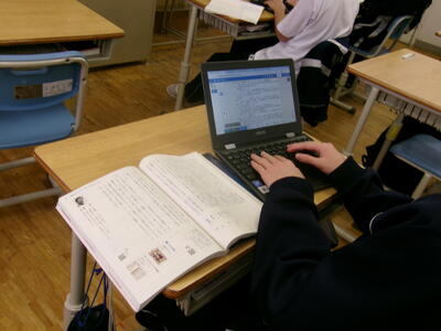 クロムブックに英文を入力しています。