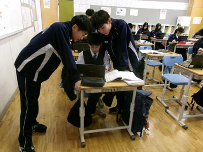 こちらはクロムブックを3つ並べながら討論中
