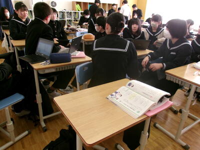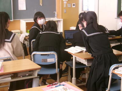 熱心な意見交換がされています。身を乗り出して意見を聞いている生徒